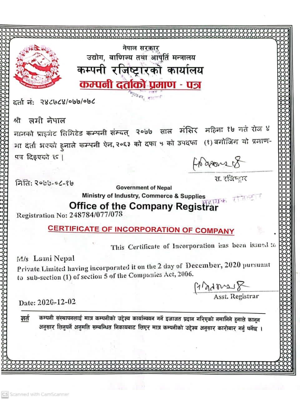 लमी नेपाल प्रा.लि. नेपाल सरकारको प्रचलित कानुन बमोजिम वि. सं. २०७७ सालमा आधिकारिक रूपमा स्थापित संस्था हो।